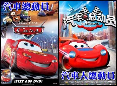 大陸媒體報導,2015年7月,中國推出一部國產動畫《汽車人總動員》,但迪士尼和皮克斯發現,該片不論從名字、動畫形象,到宣傳影片,都與迪斯尼旗下皮克斯動畫工作室(Pixar Animation Studios)的《汽車總動員》(Cars)高度相似。